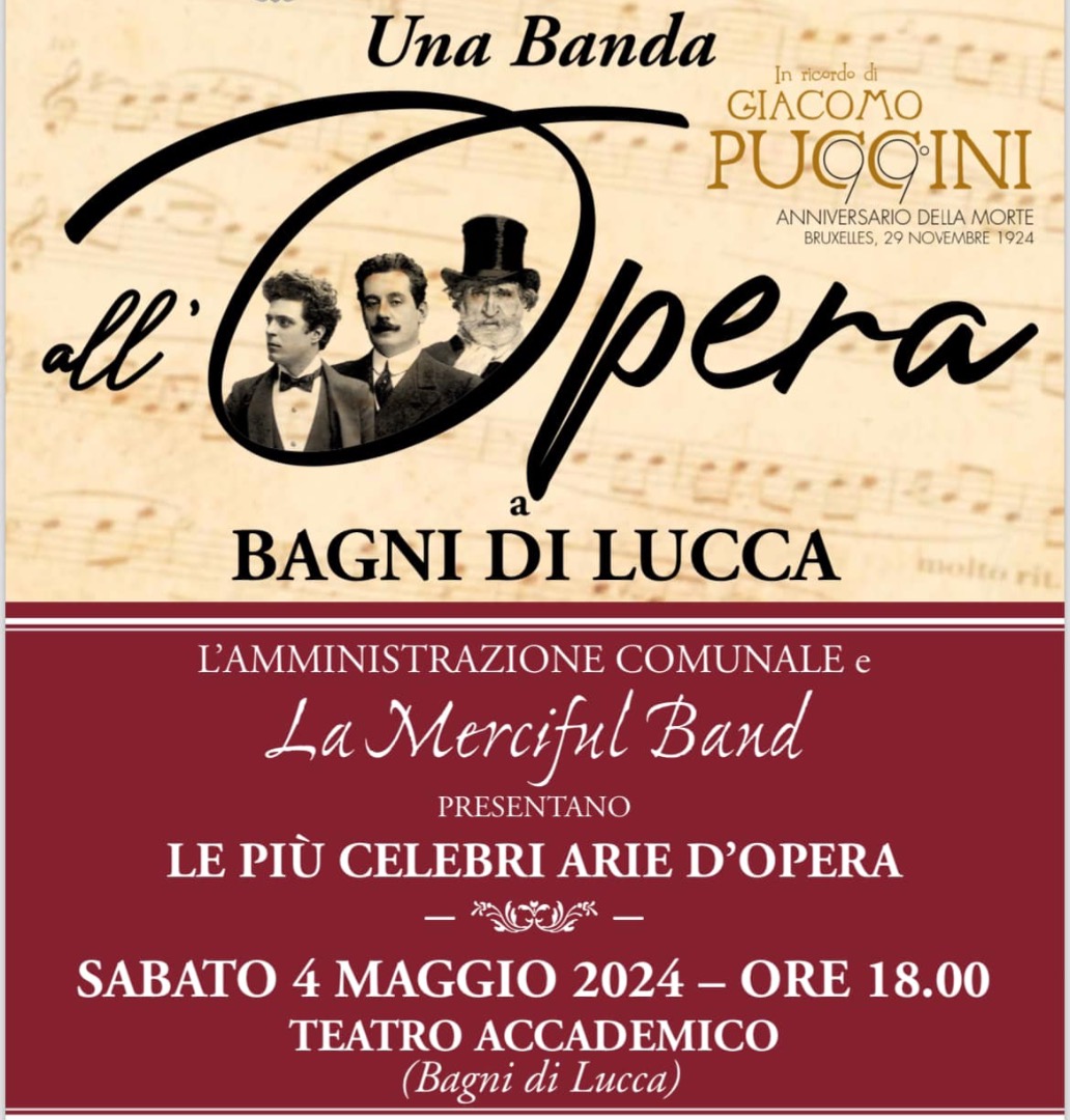The Municipality of Bagni di Lucca and the Merciful Band present the most famous opera arias by Puccini, Mascagni and Verdi.