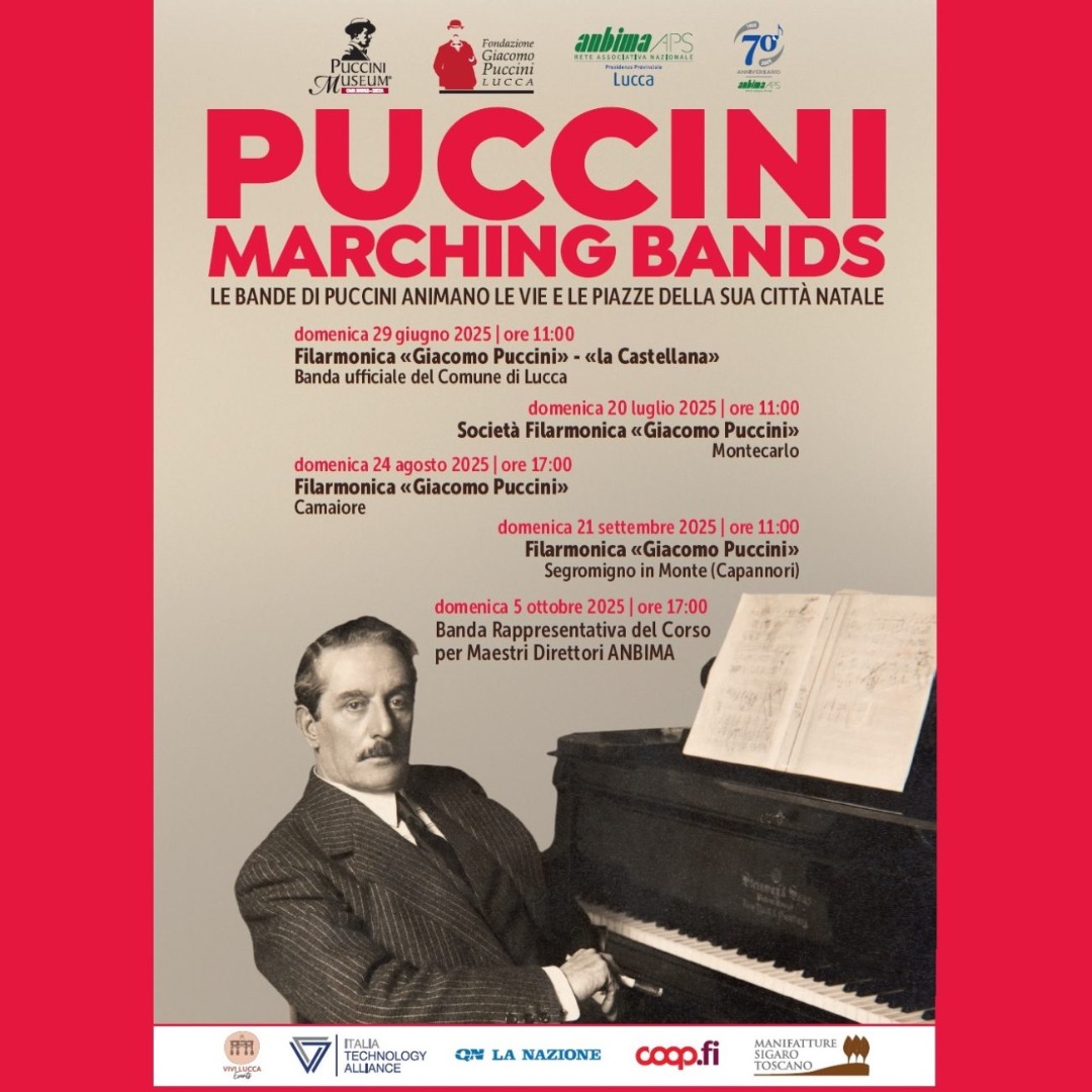 Four marching bands from the province of Lucca named after Puccini bring the music to the streets and squares of the historic center. All performances will end in Piazza Cittadella, before the iconic Giacomo Puccini statue, a few steps away from the Puccini Museum.