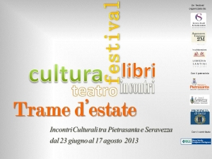 The cultural festival is organised by the Sirio Giannini Study Centre and the Cultural Association 2M, with the collaboration of the Santini Bookshop in Pietrasanta.