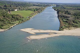 Arrivati alla strada asfaltata prendiamo a destra la ciclabile in direzione di Marina di Torre del Lago. Prima di arrivare al mare giriamo a sinistra su una sterrata che prosegue parallela al mare per alcuni chilometri, fino a Marina di Vecchiano. Percorriamo un breve tratto su asfalto e poi imbocchiamo il sentiero che prosegue sempre parallelo al mare tra la macchia mediterranea, fino a raggiungere la foce del Serchio. Qui dobbiamo spingere la bicicletta per qualche centinaio di metri sulla sabbia, ma ne vale la pena perché è un luogo bellissimo.