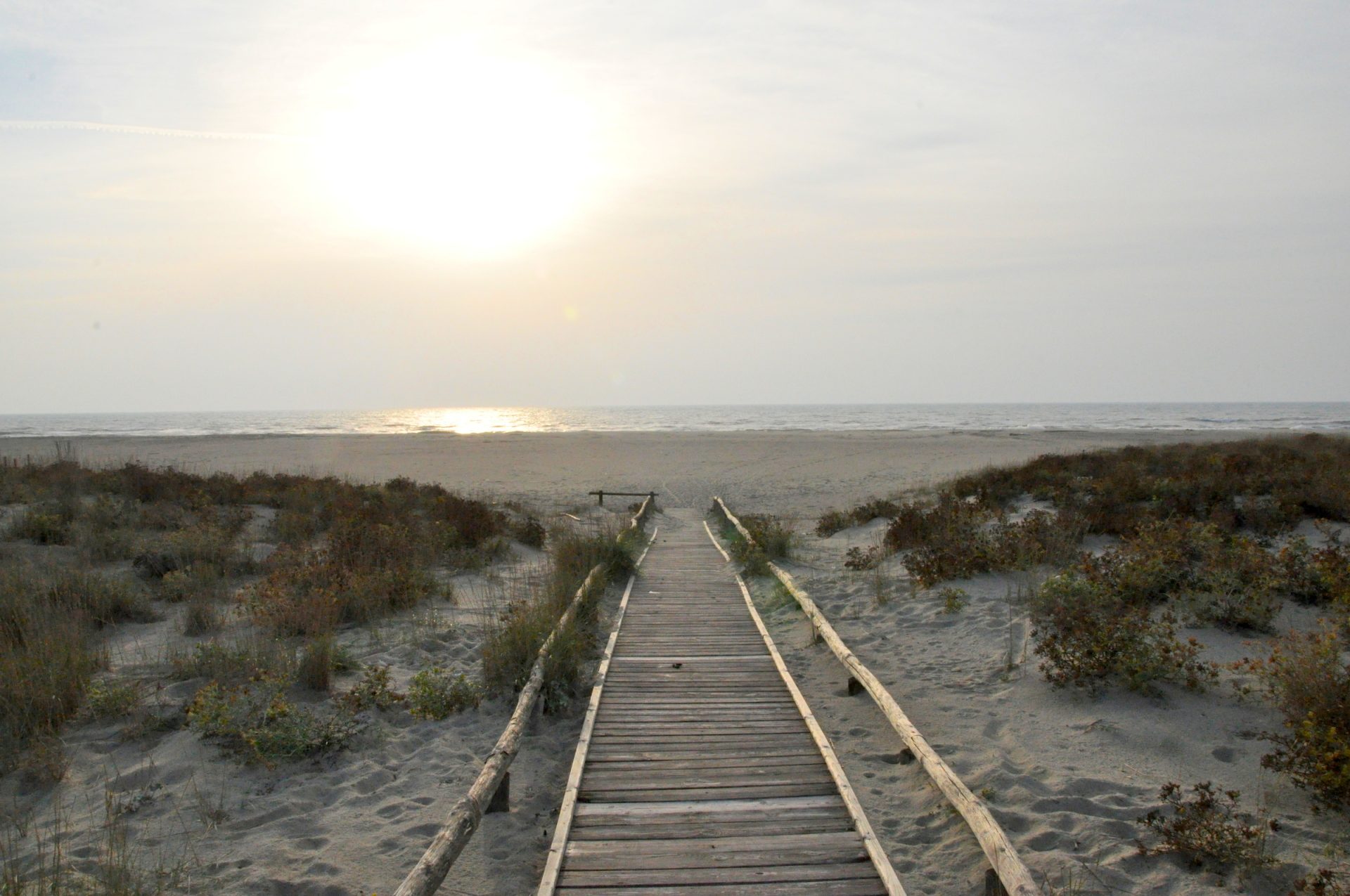 Arrivati alla strada asfaltata prendiamo a destra la ciclabile in direzione di Marina di Torre del Lago. Prima di arrivare al mare giriamo a sinistra su una sterrata che prosegue parallela al mare per alcuni chilometri, fino a Marina di Vecchiano. Percorriamo un breve tratto su asfalto e poi imbocchiamo il sentiero che prosegue sempre parallelo al mare tra la macchia mediterranea, fino a raggiungere la foce del Serchio. Qui dobbiamo spingere la bicicletta per qualche centinaio di metri sulla sabbia, ma ne vale la pena perché è un luogo bellissimo.