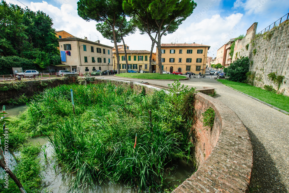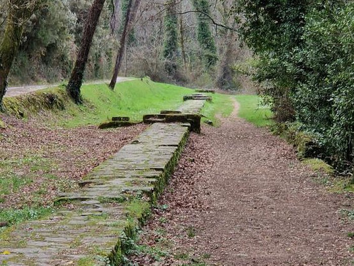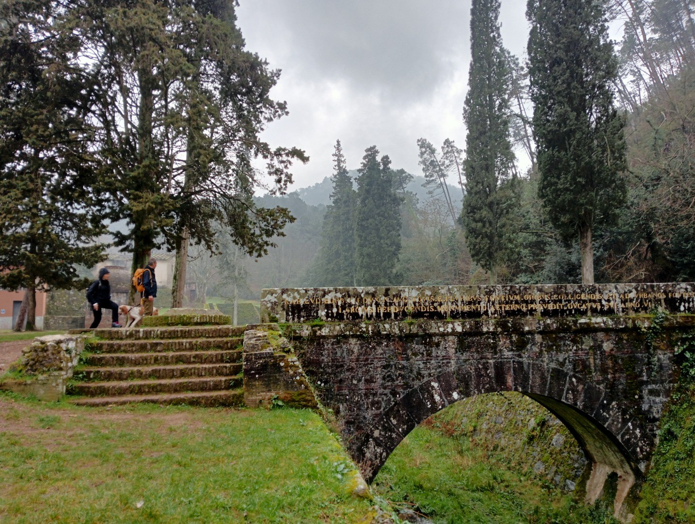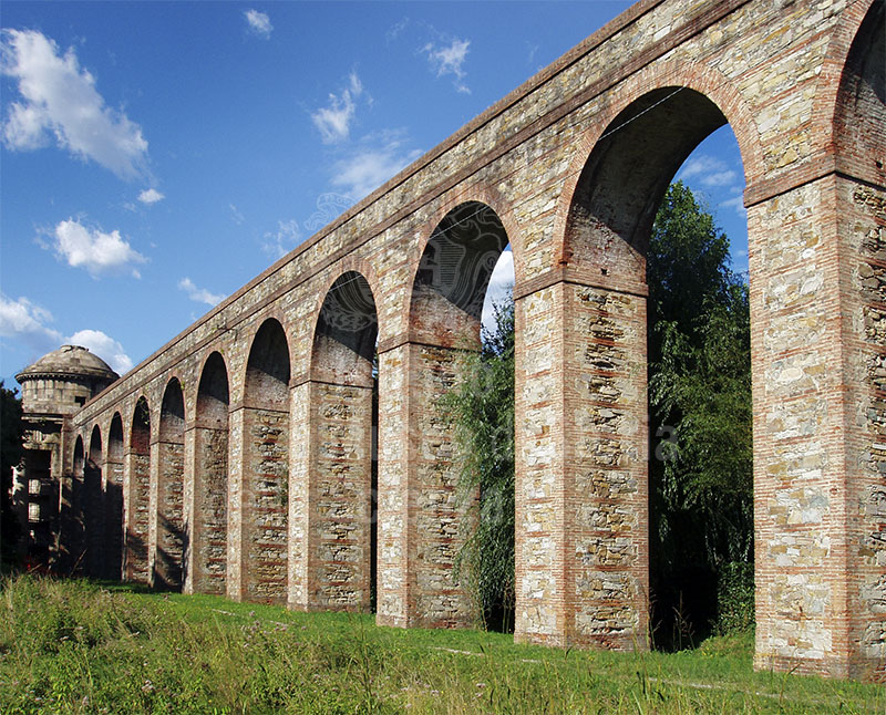 Una volta lasciato il paese di Vorno affronterete le salite che, prima lungo la strada asfaltata e poi per bei sentieri panoramici, portano fino alla sella del valico di Campo di Croce. Dalla sella comincerà la discesa attraverso i boschi di leccio del versante pisano. Il percorso perde quota da prima dolcemente, poi si fa più ripido sino ad arrivare alla località Scarpa d’Orlando, dove incontrerete una delle numerose prese di captazione delle sorgenti che alimentano l’Acquedotto Mediceo di Pisa. Ben più antica della sua “gemella” lucchese, quest’opera idrica fu commissionata alla fine del ’500 da Ferdinando I de’ Medici, inaugurata nel 1613 dal figlio Cosimo e rimase attiva per circa tre secoli, fino ai primi decenni del 1900. Seguirete la condotta interrata che conduce al Cisternone, il grande edificio adibito all’accumulo e alla decantazione delle acque, sulla quale campeggiano le sei palle, simbolo inequivocabile della casata dei Medici. Un altro breve tratto in discesa vi porterà fra le case di Asciano, dove imboccherete il percorso ciclopedonale che segue fedelmente i 4 chilometri di tracciato rettilineo dell’acquedotto, sino al suo termine, in Piazza delle Gondole, ormai all’interno dell’antica cinta muraria di Pisa.