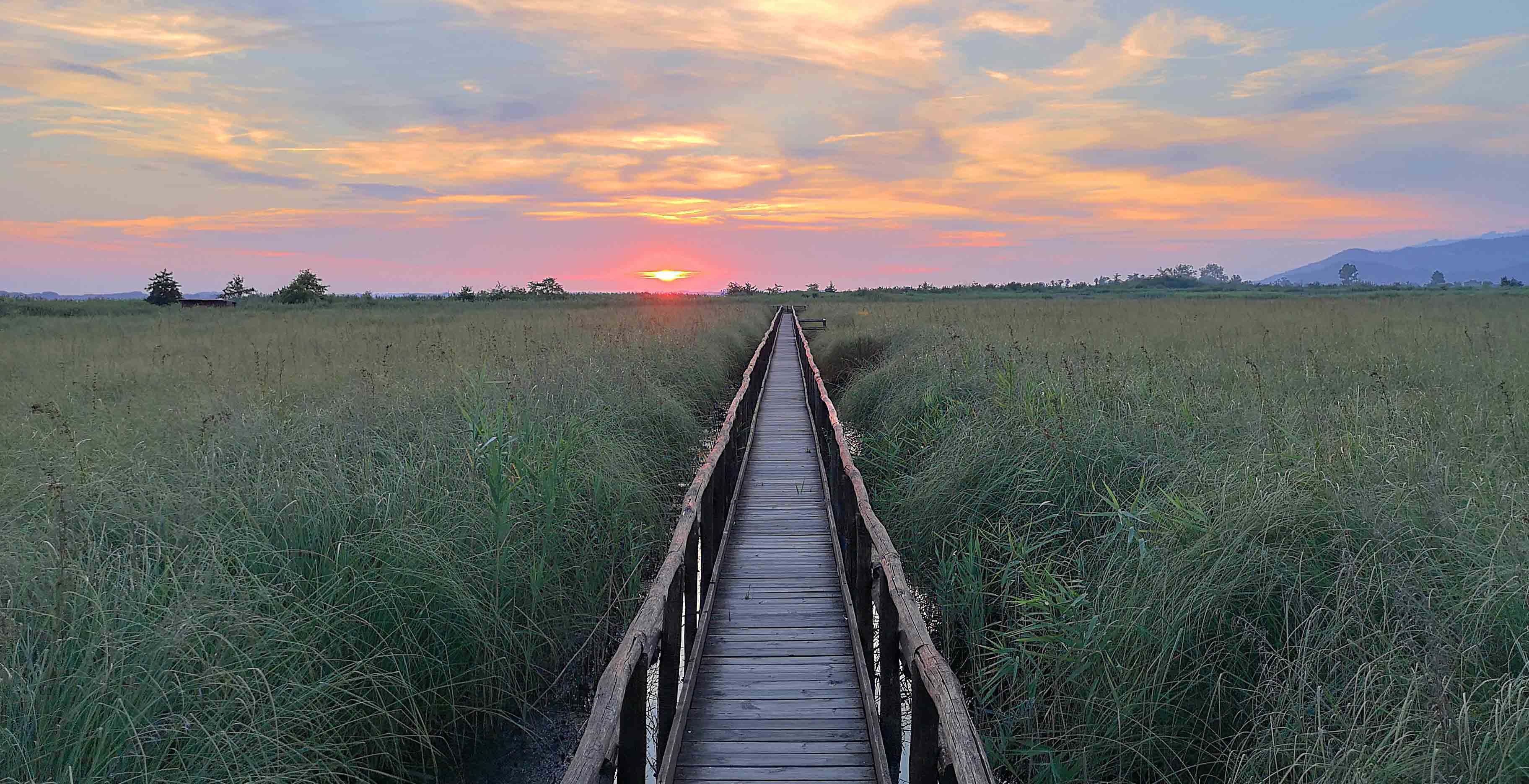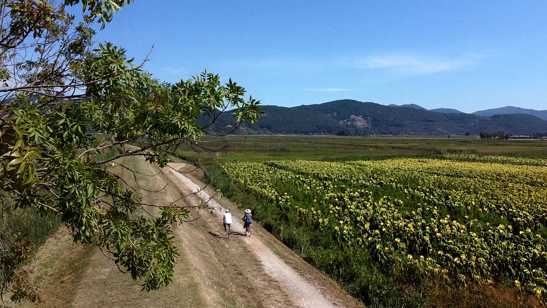 Partendo dal centro di Lucca in piazza Napoleone si sale sulle Mura rinascimentali per scendere in piazza Santa Maria e uscire quindi dalla cinta muraria. Seguendo la ciclabile in via Barsanti e Matteucci si arriva a piazzale Don Baroni, dove si trova la rampa che attraversa il poggio del fiume Serchio e porta nel Parco Fluviale. Qui svoltando a destra → si procede sino all’incrocio con la via per Camaiore. Una volta attraversato l’incrocio, avanzare in direzione del Ponte San Quirico per poi, appena prima del ponte, svoltare a destra → in via della Macchia. Da qui si prosegue lungo l’itinerario ciclopedonale Puccini fino al termine di questo, all’intersezione con via Nazionale: svoltare a sinistra ← e proseguire in direzione di Borgo a Mozzano fino a Diecimo: alla rotonda svoltare a sinistra ← (3 uscita) e procedere lungo la SP32 fino alla svolta sulla destra → per raggiungere Celle dei Puccini. Tornare nuovamente sulla SP32, proseguire per circa 2,5 km fino alla svolta a sinistra ← per Fiano, che in 10 km porta alla SP1 via per Camaiore. Qui svoltare a destra → e proseguire per 4,5 km fino alla svolta a sinistra ← direzione Piazzano per giungere a San Macario. Proseguire sino a Chiatri passando da Farneta per poi scendere il Monte Quiesa in direzione Massarosa. In località Quiesa, girare a sinistra ← in via Pietra a Padule e proseguire fino a via del Porto, che conduce all’Oasi LIPU sul Lago di Massaciuccoli. Da qui si riprende il Percorso Medio per tornare a Lucca.