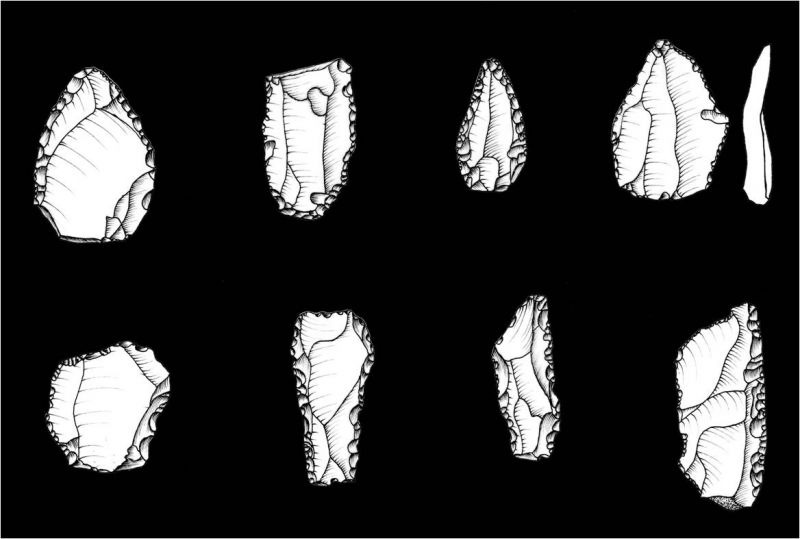 I materiali archeologici rinvenuti nella grotta durante gli scavi consistono principalmente di strumenti di selce, "industria litica" attribuibile, in base alle caratteristiche tecniche, alle fasi finali del Musteriano, la cultura dell'uomo di Neanderthal. Si tratta di manufatti di medie dimensioni, tra i quali si nota una netta predominanza dei denticolati ed una forte presenza anche delle punte e dei raschiatoi, utensili tipici di questo periodo.