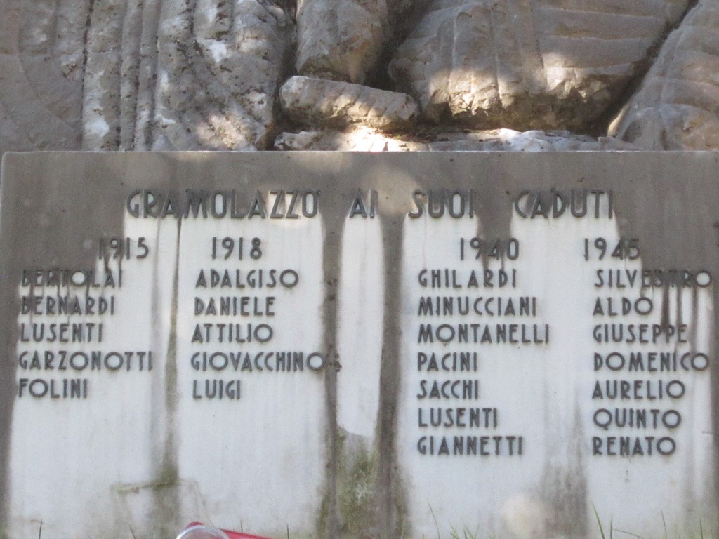 - Gramolazzo ha inaugurato solennemente il Monumento ai suoi Caduti e l’edificio scolastico. Giornata di gloria e patriottismo, in La Garfagnana XLVIII 46 14 Novembre 1929 Castelnuovo Garfagnana; Il Monumento ai Caduti e il fabbricato scolastico di Gramolazzo, in “Il Popolo Toscano”, X, 296, martedì 10 Dicembre 1929, seconda edizione.