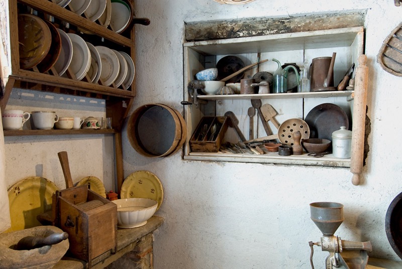 Attrezzi per la lavorazione del castagno, ricostruzione di ambienti legati allo sfruttamento del castagno.