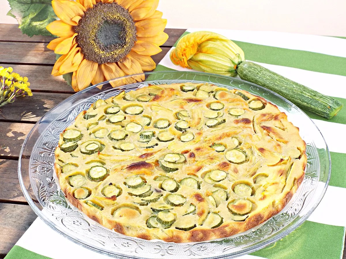 La Scarpaccia è una torta della tradizione culinaria della Versilia a base di zucchine novelle. Il nome deriva dalla sua forma: in origine non era tonda e regolare come si fa oggi, ma piatta e distesa in teglie rettangolari lasciando i bordi frastagliati, proprio come suole di scarpe consumate. Esiste una versione salata, tipica delle zone dell’entroterra, in particolare di Camaiore e Massarosa, e una versione dolce, tipica di Viareggio, che è quella che vi proponiamo.