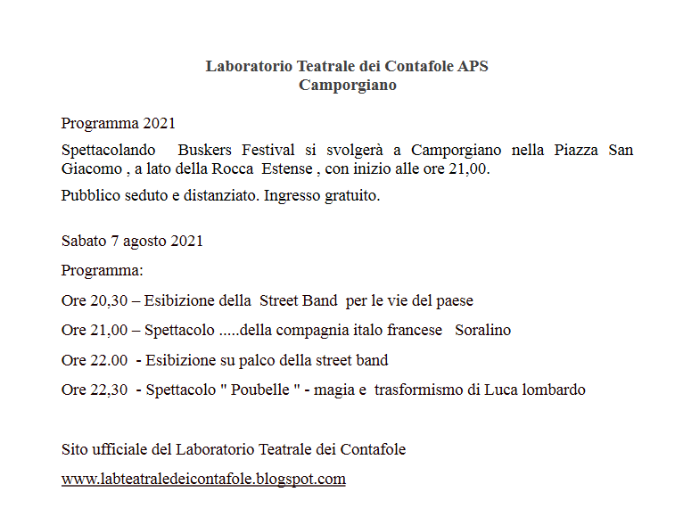 Organizzato dal Laboratorio teatrale dei Contafole in collaborazione con la Pro-Loco, con il Comune di Camporgiano, l'Unione dei Comuni della Garfagnana, alcune Fondazioni di Banche, Lucca Promos – The Lands of Giacomo Puccini e Cesvot. La direzione artistica è del Consiglio del Laboratorio teatrale presieduto dal suo presidente dottor Giorgio Santarini.