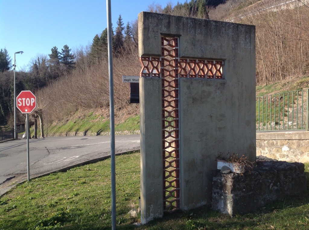 The stele dedicated to all the Fallen (included those of labor) has been realized with cement. On it there is a cross with three legs in a rectangular structure of white cement and you can read the epigraph “…e sia la pace”. The monument is surrounded on three sides by a stone structure, on which there is a plate dedicated to the Fallen. The stele is located in a small Memorial park where, in honour of the Fallen, stay just two trees: a pine and a horse-chestnut.