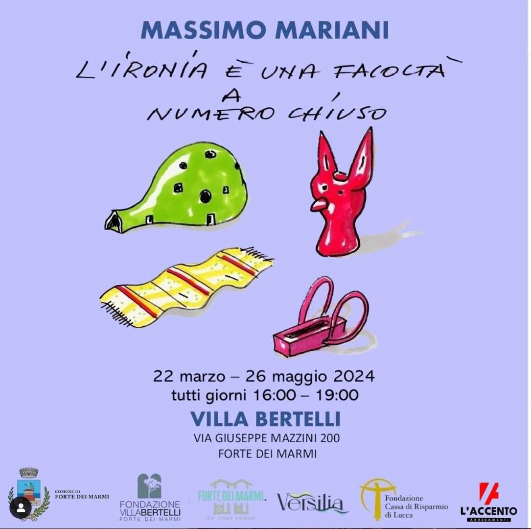 Untitled Mostre ed esposizioniArteCulturaIn Famiglia Mostra personale dell’architetto Massimo Mariani presso la Fondazione Villa Bertelli a Forte dei Marmi e sarà visitabile dal 22 marzo 2024 al 26 maggio 2024. Information:Comprensorio:VersiliaComune:Forte dei MarmiTelefono:+39 0584 787251Ingresso:LiberoOrario di apertura:16 - 19Email Facebook Instagram Sito web Via Mazzini 200 - Forte dei Marmi
